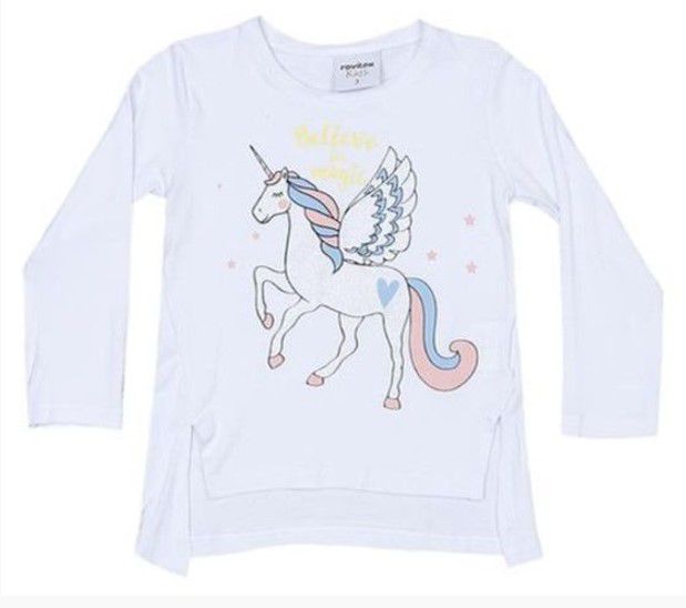 Blusa Manga Longa Bebê Menina Unicórnio Branca - Rovitex Kids