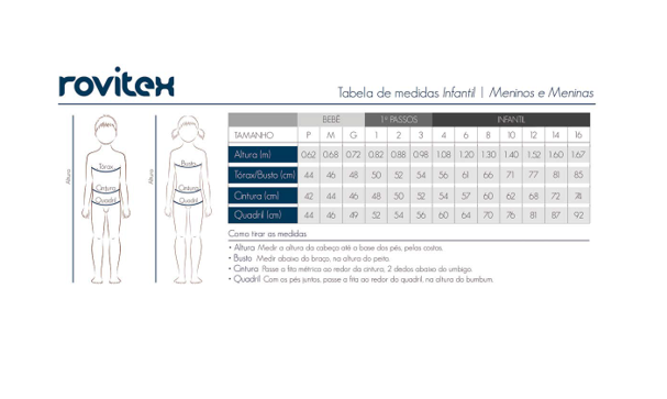 Tamanho: 2, 3, 4, 6, 8 e 10 anos