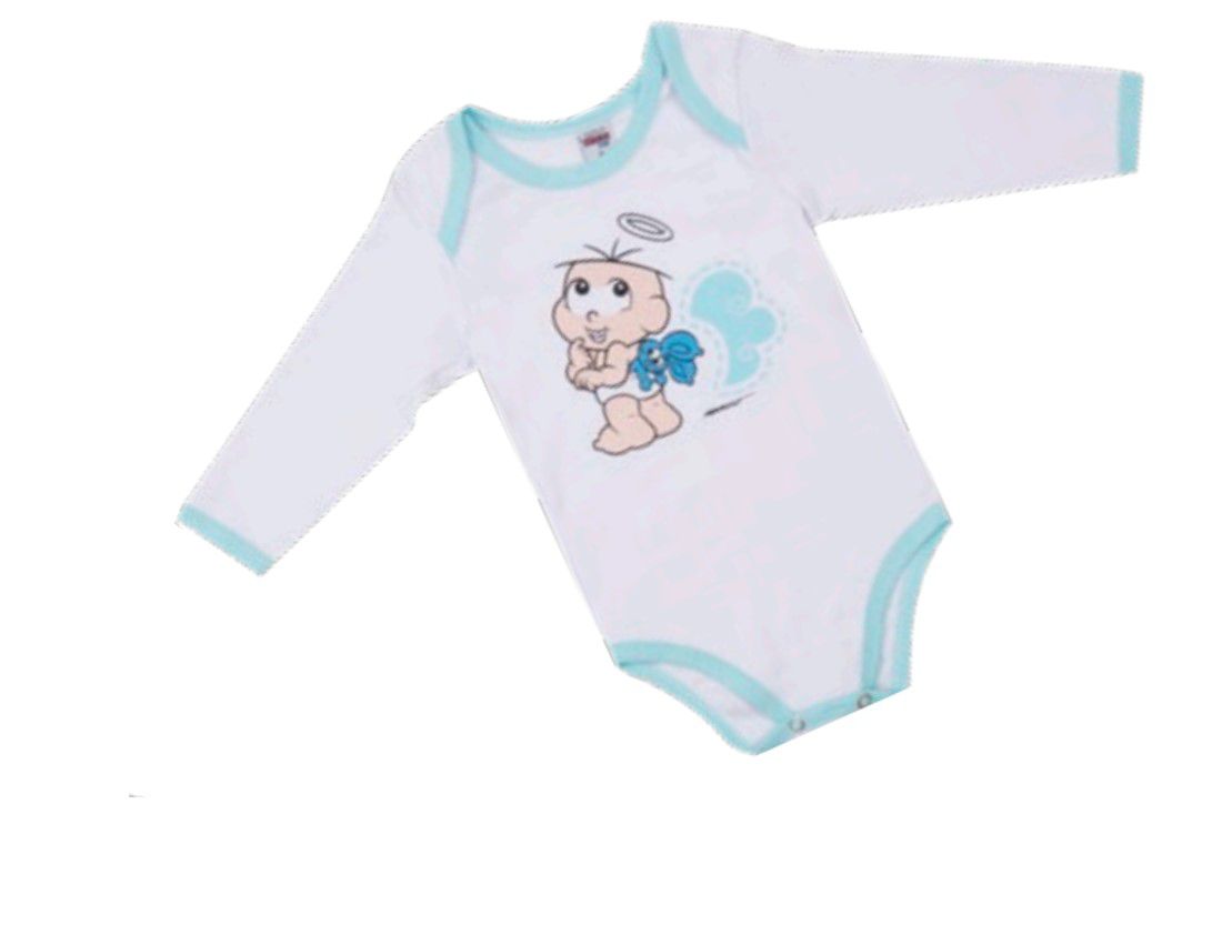 Body Manga Longa Bebê Turma da Mônica Branco e Verde Água