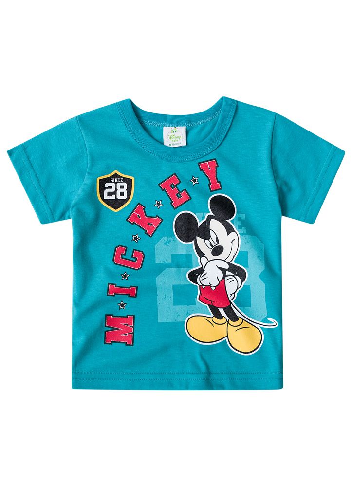 Camiseta Manga Curta Bebê Menino Mickey Azul Turquesa - Brandili