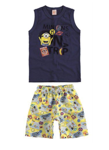 Conjunto Bebê de Regata e Bermuda Minions Azul Marinho - Malwee