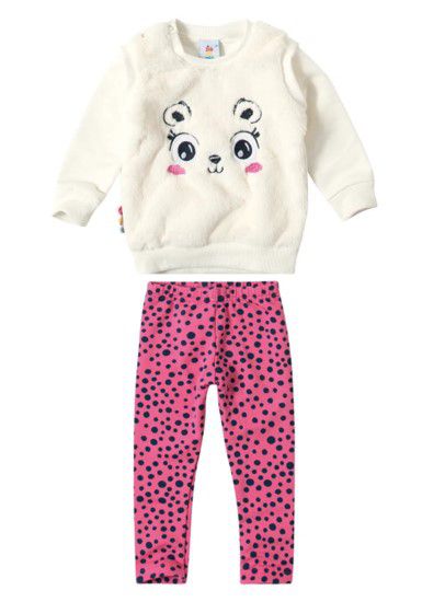 Conjunto Bebê Moletom Flanelado Rosa e Off-White Zig Zig Zaa - Malwee