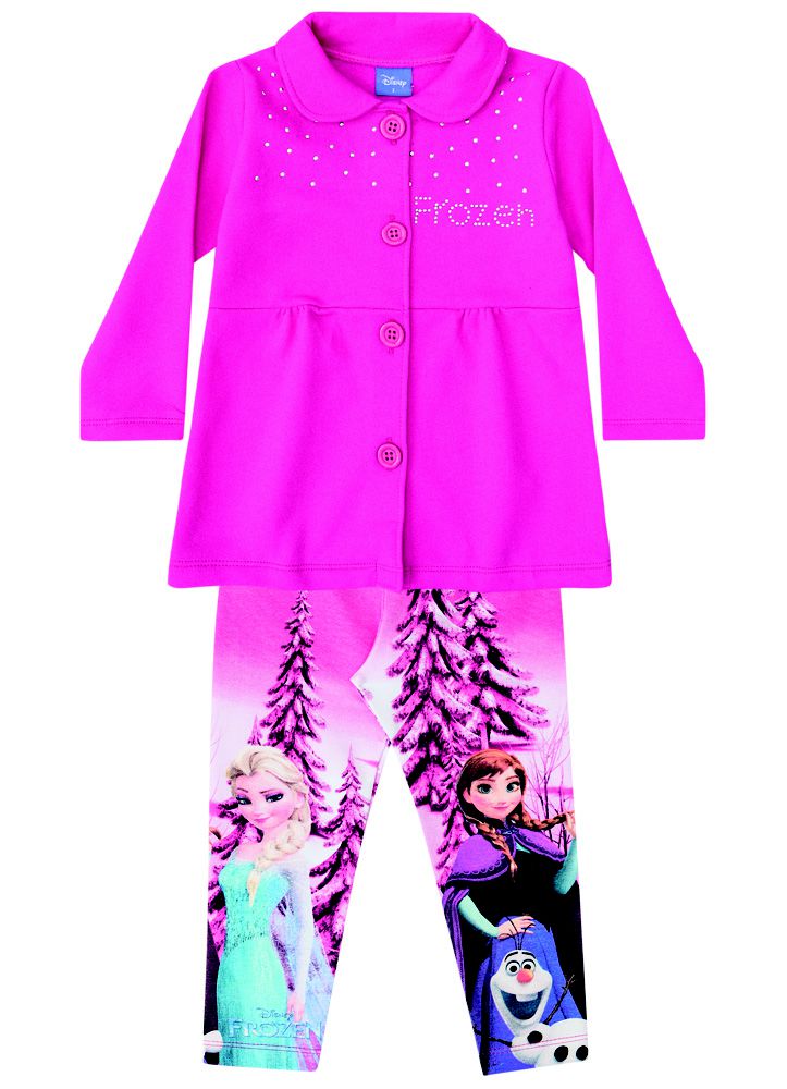 Conjunto Casaco Moletom e Legging Estampada - Disney Frozen - Rosa - Brandili