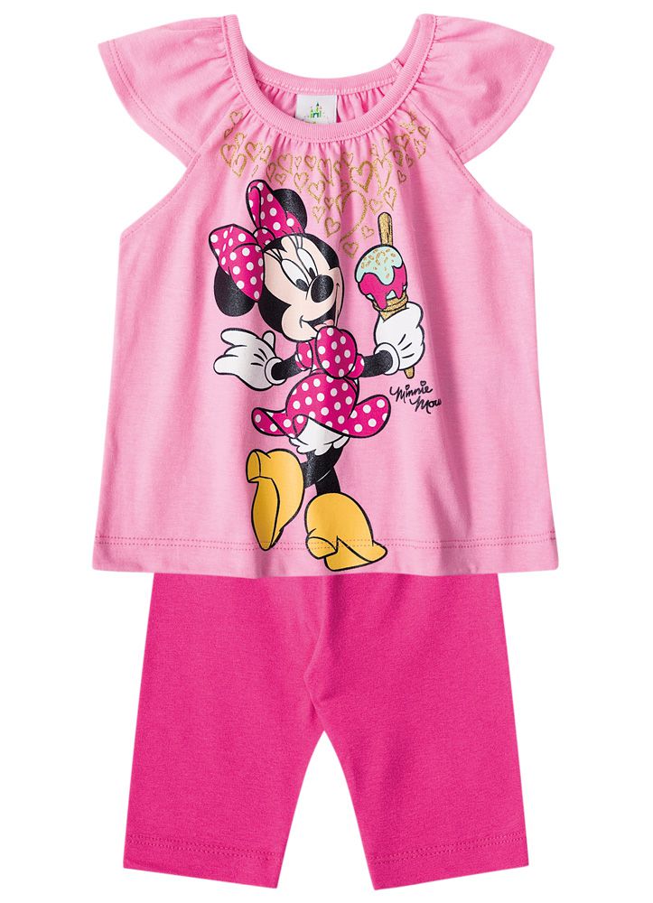 Conjunto Manga Curta Bebê Menina Minnie Rosa - Brandili