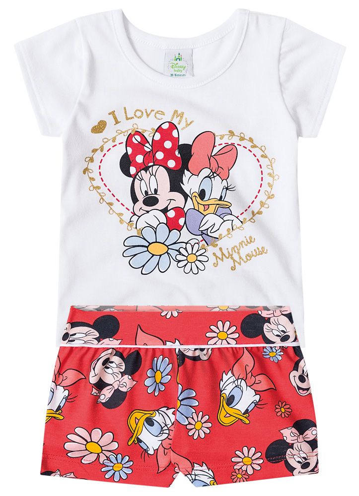 Conjunto Manga Curta Bebê Menina Minnie e Margarida Vermelho - Brandili