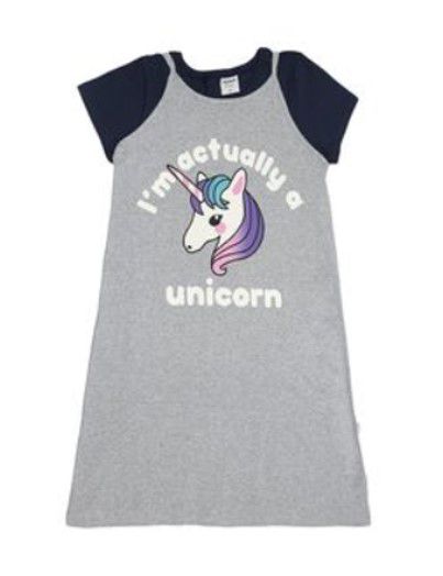 Feita em algodão de alta qualidade, o vestido traz a estampa do Unicórnio.