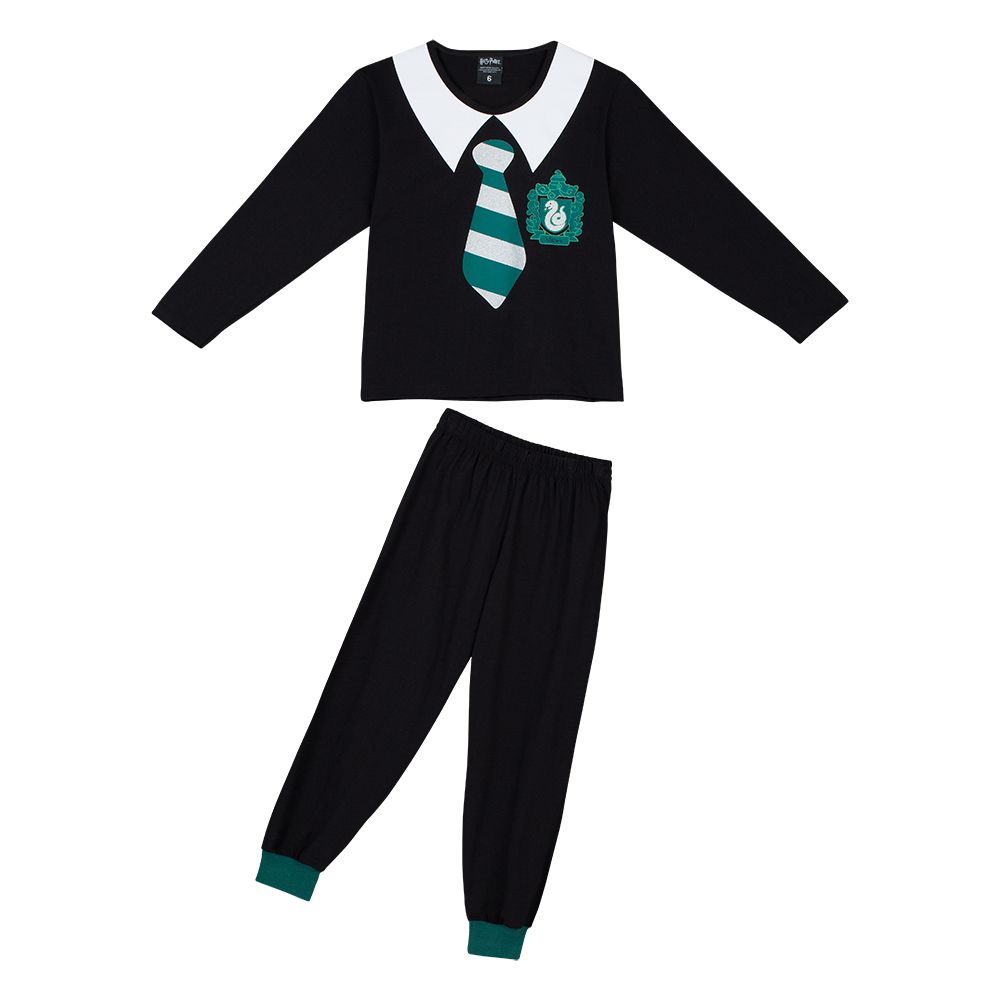 Pijama Manga Longa Infantil Menino Harry Potter Slytherin Preto e Verde - Lupo