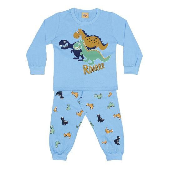 Pijama Manga Longa Bebê Menino Dinossauro Azul