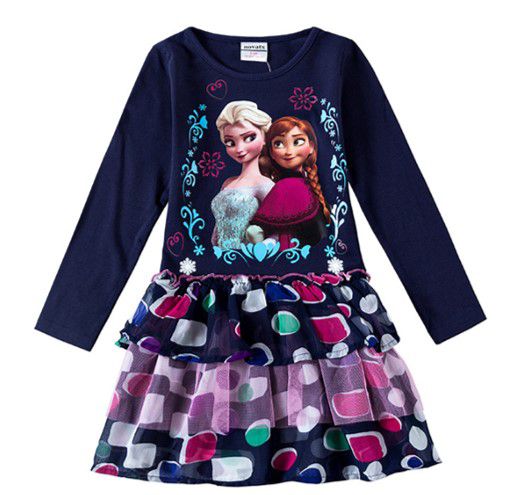 Vestido Bebê Anna e Elsa Frozen - Babados e Tule - Azul Marinho