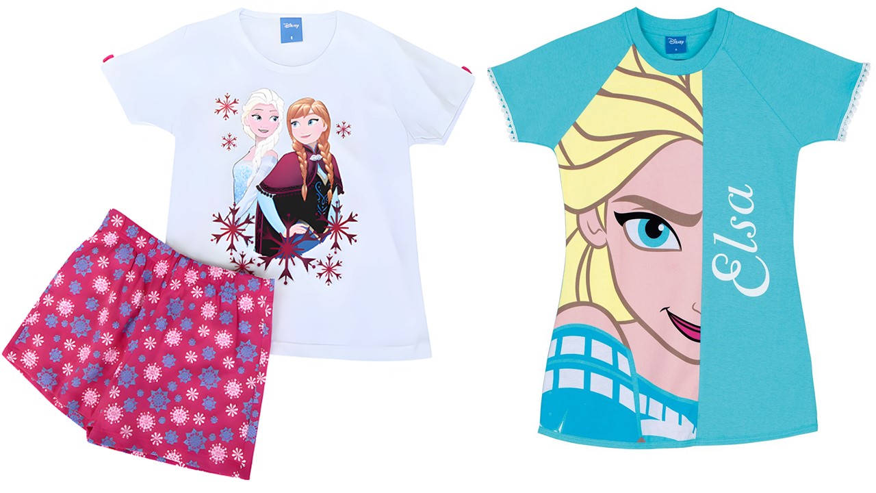 O combo de pijama e camisola de manga curta com estampa da Frozen está imperdível e deixará sua princesa ainda mais linda e confortável na hora do sono.
